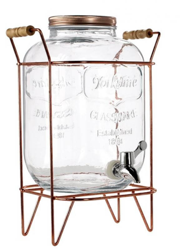 Słój został wykonany z trwałego szkła, które zachowuje smak i aromat napojów, a także nie wchodzi w reakcje chemiczne z ich składnikami. Wyposażony w praktyczny kranik, dzięki któremu nalewanie napojów jest łatwe i bez zachlapania. Już nigdy nie będziesz musiał martwić się o rozlewanie czy podawanie napojów w nieporęczne butelki.